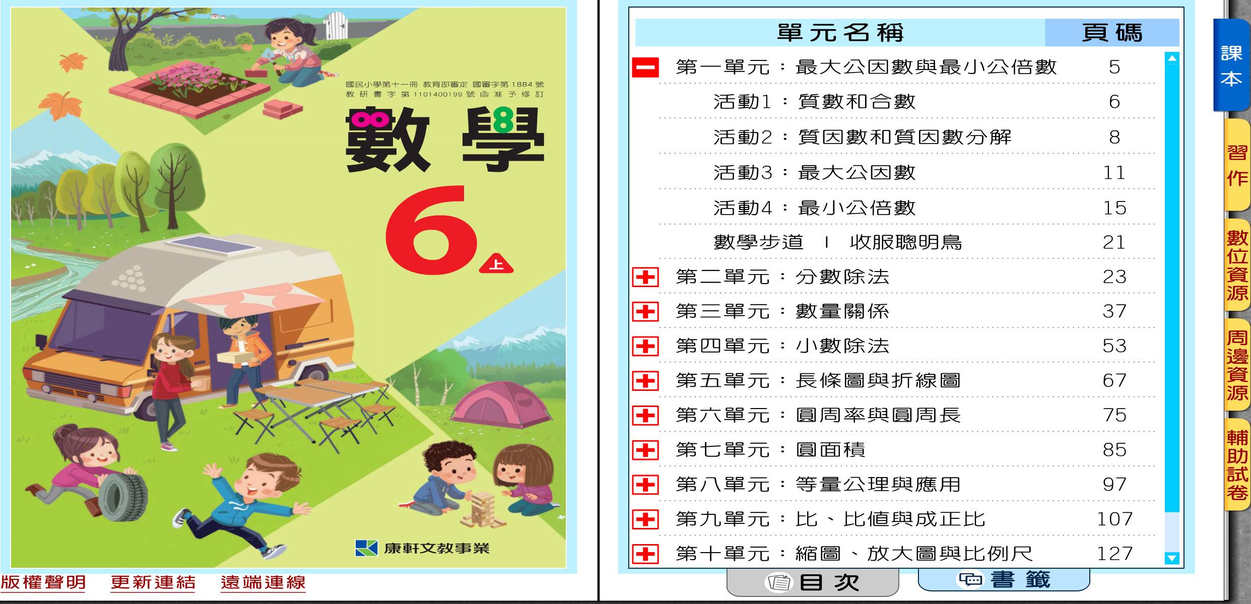 112學年上學期 國小 康軒版 數學電子書 6年級(含課本、習作含解答、教學資源)教學光碟