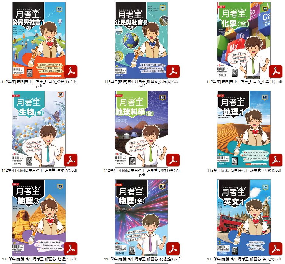 112學年上學期[龍騰]高中月考王 評量卷 1-3年級 卷類光碟