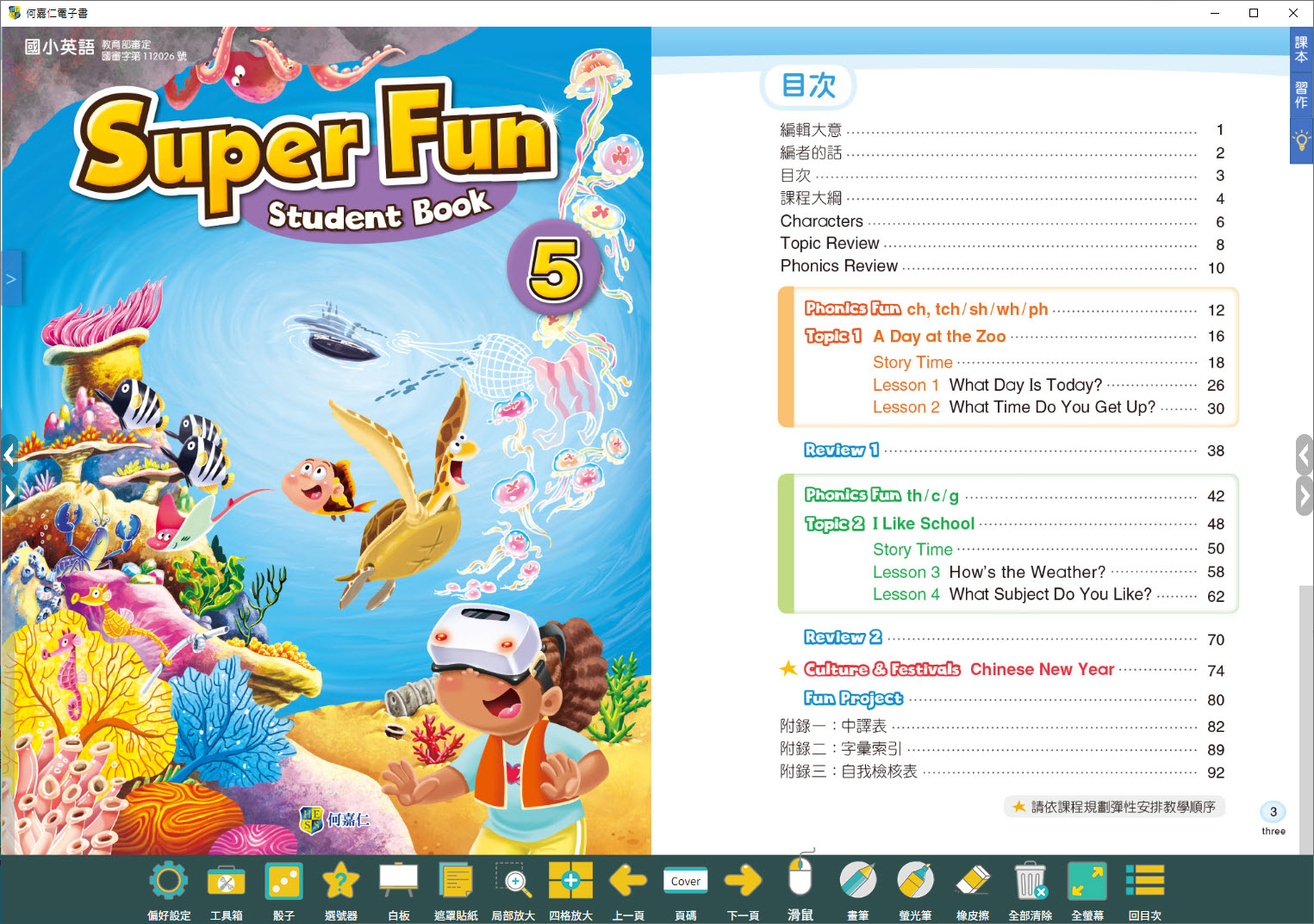 112學年上學期 國小 何嘉仁 英語電子書 Super Fun 第5冊(含課本、習作含解答)教學光碟