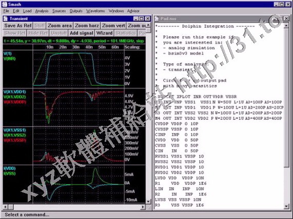 Smash 為法國 Dolphin Integration公司所發展之混合信號兼顧多層次模擬軟體,