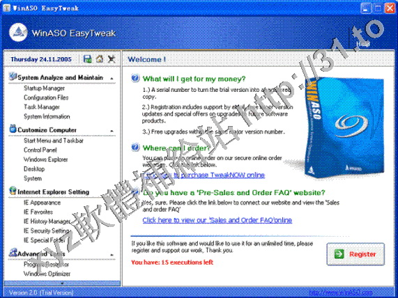 WinASO EasyTweak v3.0.1 英文正式版(系統優化軟體)