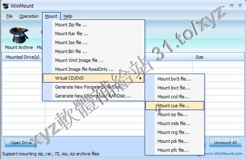 WinMount v3.3.0524 英文正式版(把 ZIP RAR 等壓縮文件映像為一個虛擬盤符軟體)