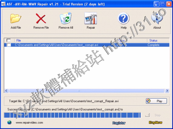 Repair Video ASF-AVI-RM-WMV Repair v2.01 英文正式版(視頻檔修復軟體)